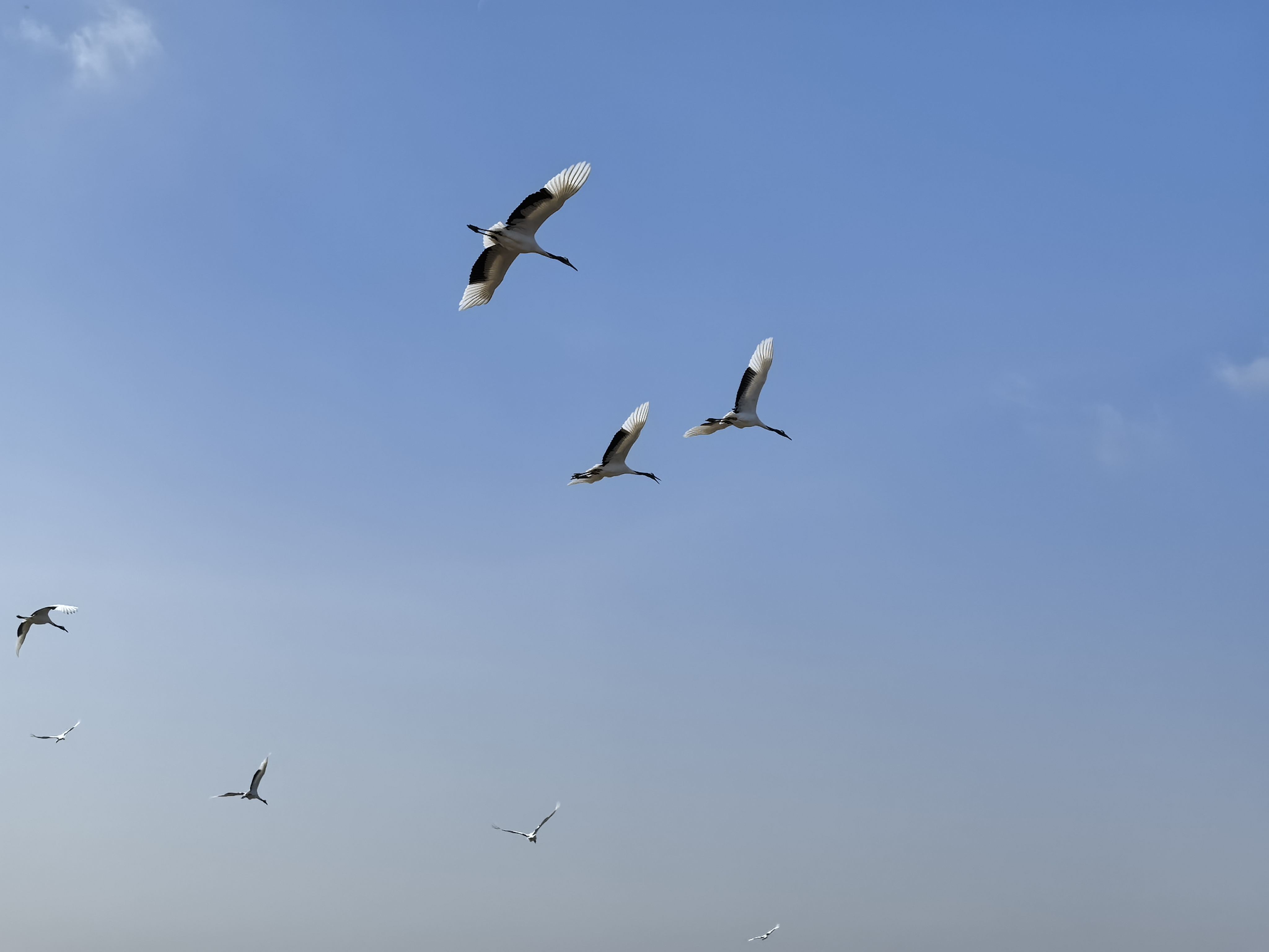 据悉,今年夏季,保护区工作人员在野外监测到15只小鹤出生,这是保护区连续9年发现野化放归丹顶鹤自然孵化成功。随着越冬丹顶鹤的到来,保护区正持续开展人工繁育丹顶鹤野化放归工作,让它们能够适应野外生活,来年顺利踏上北迁之路。