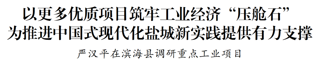 近日,市长严汉平在滨海县调研重点工业项目建设情况,强调要认真学习贯彻党的二十届四中全会精神,全面落实市委、市政府部署要求,深入推进工业强市战略,牢固树立项目为王理念,加快推动重大项目早开工、早建设、早达效,以更多优质项目筑牢工业经济“压舱石”,为推进中国式现代化盐城新实践提供有力支撑。