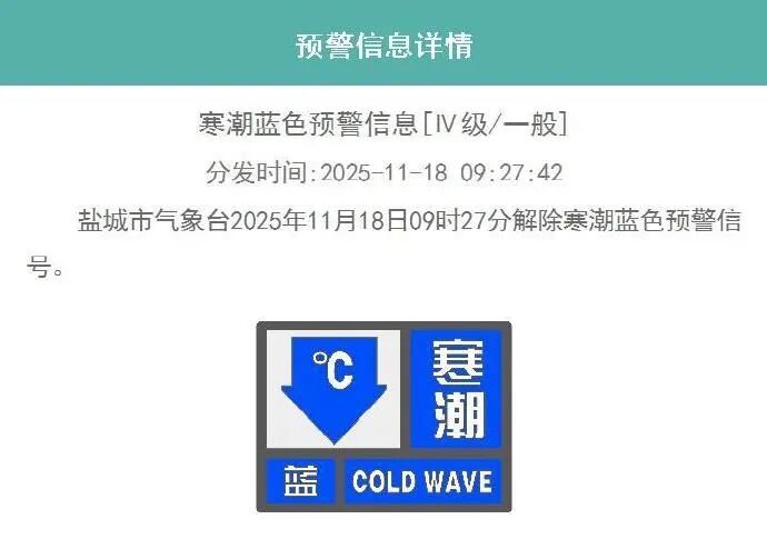 解除寒潮蓝色预警信号
