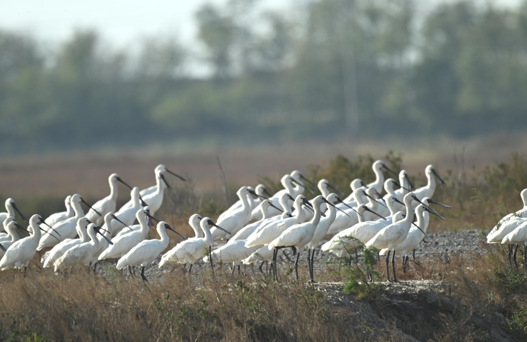 这里是世界上面积最大的潮间带湿地,也是全球最重要的滨海湿地生态系统之一,还拥有国内第一块固定高潮位候鸟栖息地“720高地”。勺嘴鹬、小青脚鹬等濒危物种在这里补充能量准备南迁,东方白鹳、火烈鸟、卷羽鹈鹕在这里悠然过冬……退潮后的滩涂上,鸟群密密麻麻,堪称“鸟类联合国大会”。