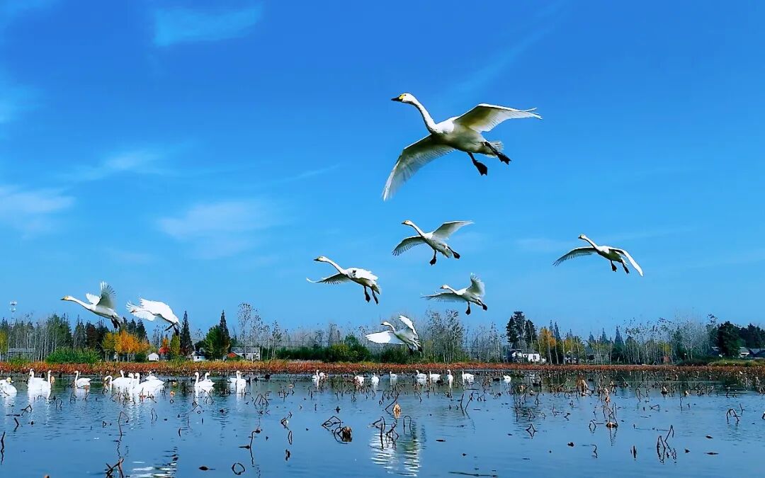 建湖县成为越冬小天鹅优先选择地,既是由于藕塘生境提供的浅水环境与丰富食物,加之人为干扰少,从而吸引小天鹅在此栖息越冬。经历过完整迁徙周期的成年小天鹅,对越冬地的地形、食物资源、气候条件已形成记忆,次年越冬时会优先沿原路线返回熟悉的栖息地。