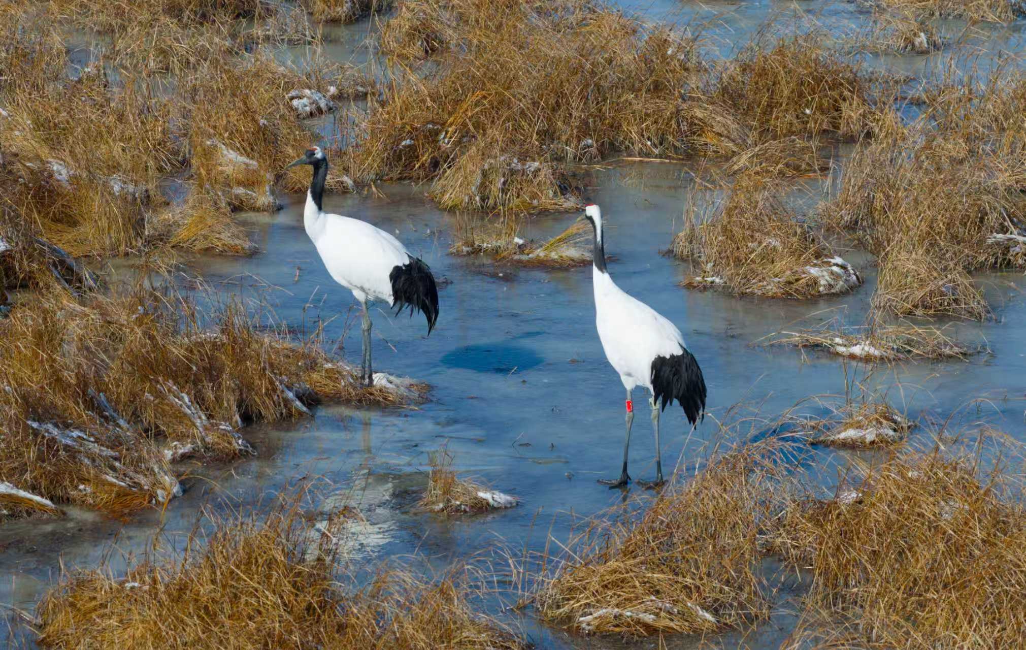“看到它平安归来还带着伴侣,所有的牵挂都化作了欣慰与感动。”陈国远说。通过卫星定位和无人机确认,这对丹顶鹤已完全融入湿地环境,时而展翅盘旋,时而低头觅食,姿态自在惬意。“我们将通过卫星追踪与地面巡护相结合的方式,持续关注‘YC257’和其他丹顶鹤的动态,确保它们安全越冬,明年春天顺利北返。”