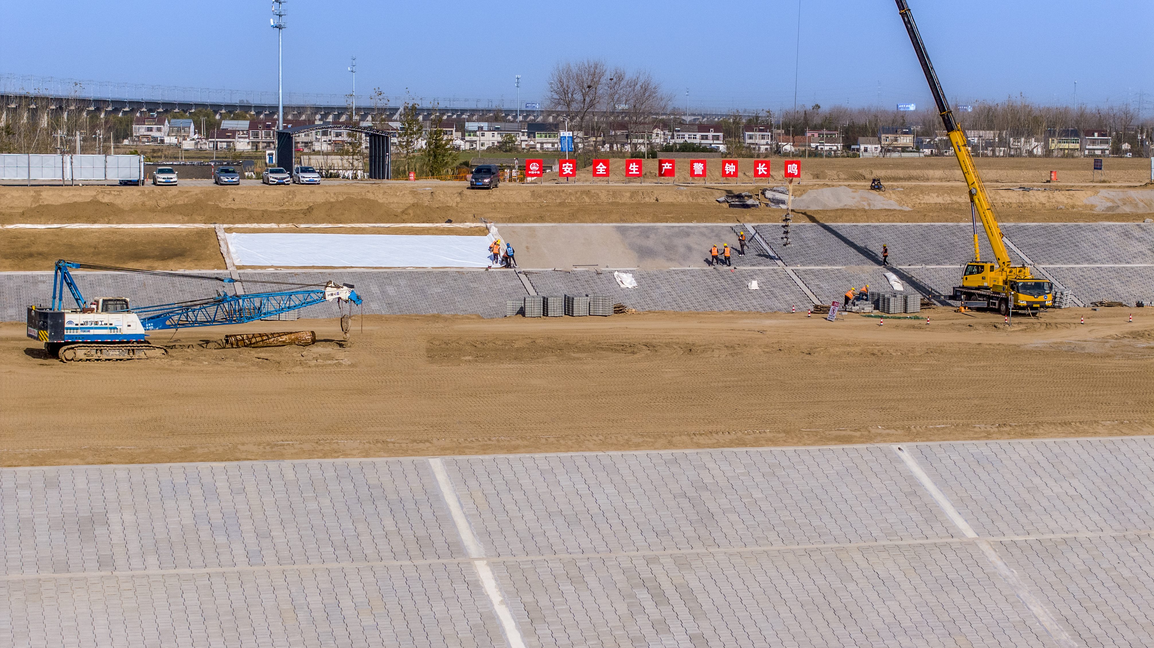 11月28日上午,淮河入海水道二期青盐铁路防护加固工程深泓北侧顺利完成。