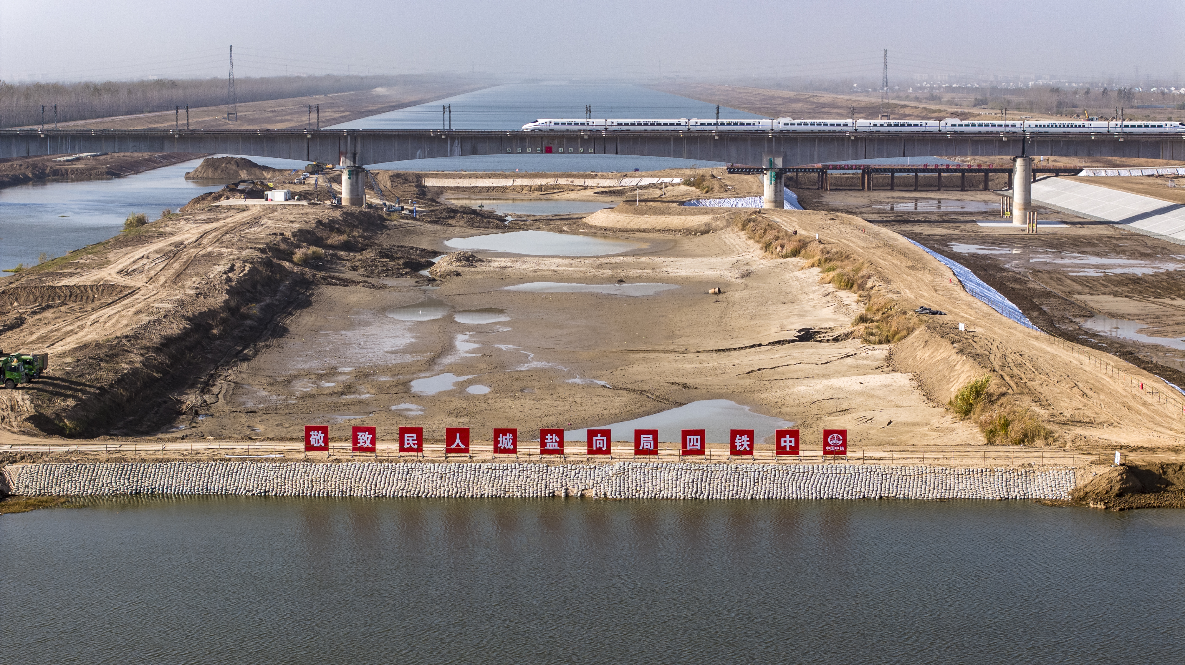 淮河入海水道二期青盐铁路防护加固工程深泓北侧顺利完成