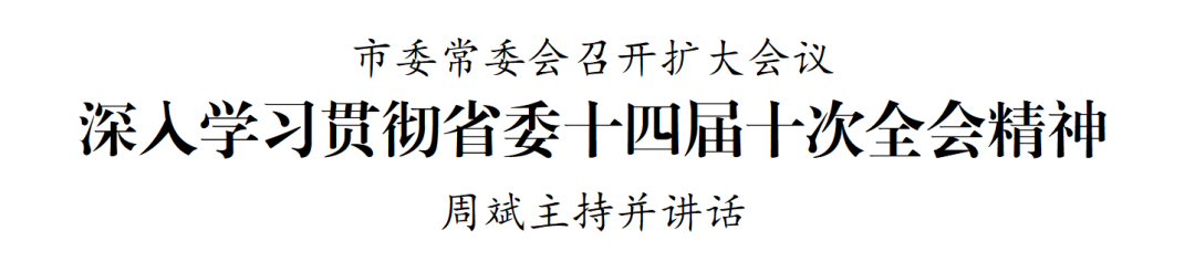 12月1日,市委常委会召开扩大会议,传达学习省委十四届十次全会精神,研究部署贯彻落实工作。市委书记周斌主持会议并讲话。