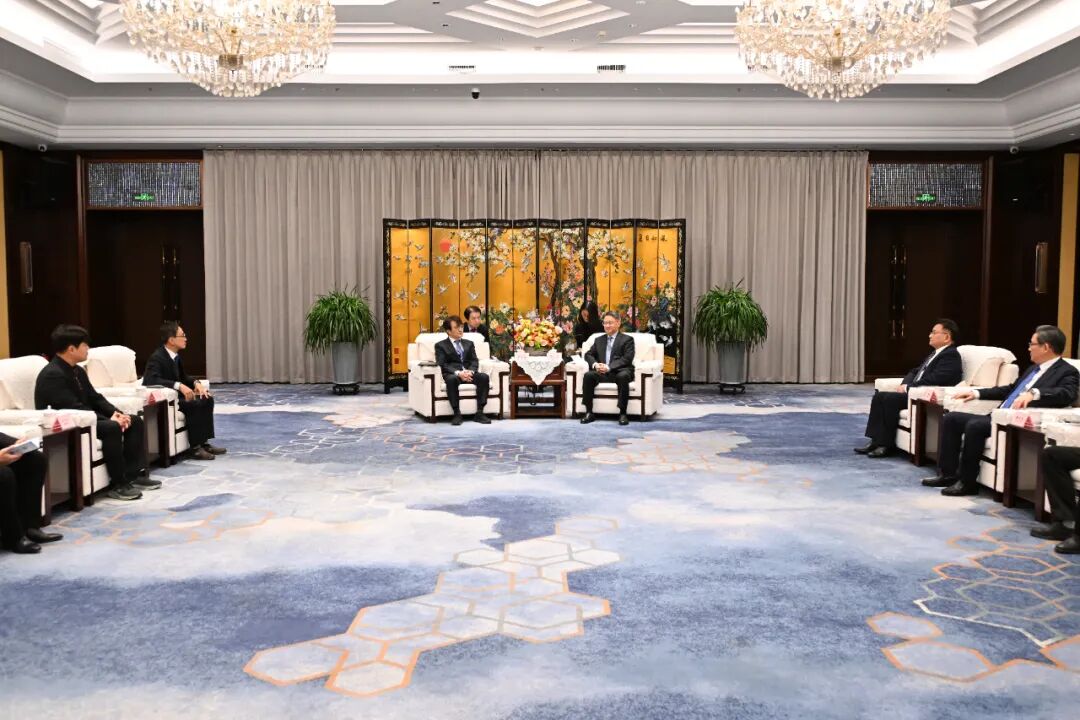12月3日,市委书记周斌在盐会见韩国新万金开发厅厅长金宜谦一行,双方就深化产业合作、推动绿色发展进行交流。