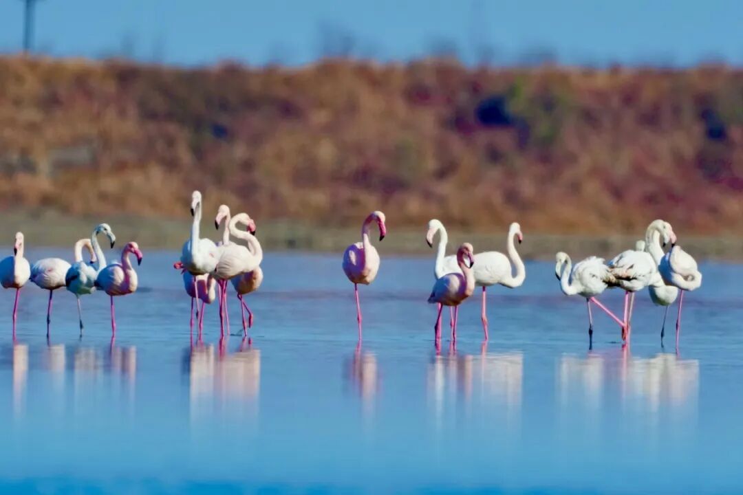 这些来自远方的“粉色精灵”,自2015年起,已经连续11年来盐越冬,从最初的1只上升到19只,它们用翅膀为盐城的好生态投下了“信任票”。2019年,盐城黄海湿地列入《世界遗产名录》,成为我国数千公里海岸线上第一个滨海湿地类世界自然遗产,开创了全球迁飞候鸟保护的先河,也为全球人口稠密、经济发达地区开展生态保护提供全新的“中国经验”。