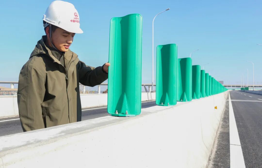 为打造“内实外美”的品质工程,项目始终坚守质量安全理念,全面推广“四新技术”赋能施工提质增效:桩基施工采用环切工艺破除桩头,保障桩身完整性与承载能力;桥梁支架选用盘扣支架搭设,兼顾施工效率与安全防控;预应力施工运用智能张拉工艺,实现精准控制,提升桥梁结构耐久性;护栏采用无拉杆施工工艺,从源头规避后期渗水隐患,让工程兼具实用价值与视觉美感。