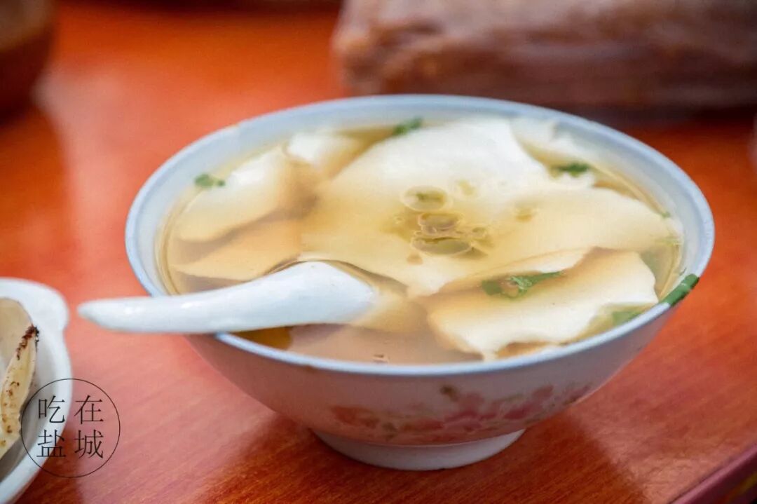 在盐城,豆腐花也是早餐里的明星。一勺豆花,嫩白如玉,撒上虾皮、紫菜,再淋上酱油或点缀上辣椒,滩涂的咸润尽数化在这碗里。