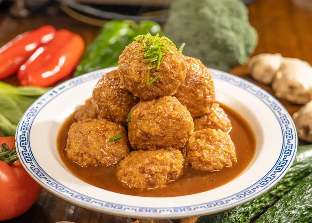 与讲究肥瘦搭配的南京、扬州狮子头不同,盐城肉圆分出几派,比较“主流”的做法必须加入糯米和马蹄肉,吃起来软糯粘口,脆口的马蹄恰好地平衡了肉的“腻”。