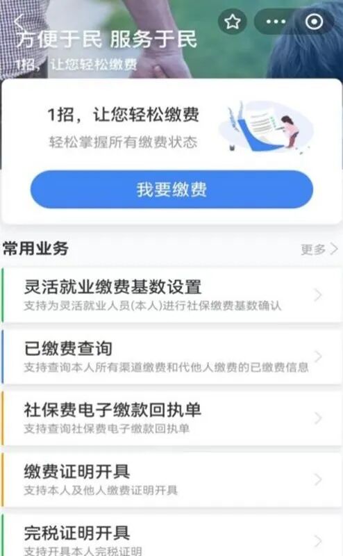 1.微信缴费。打开微信,搜索“江苏税务社保缴纳”小程序,或扫一扫下方二维码,点击进入。