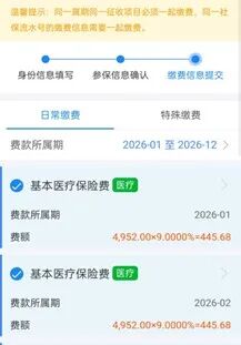 2026年职工基本医疗保险缴费工资基数下限暂按4952元执行,缴费工资基数上限暂按24762元执行。灵活就业参保人员缴费标准为445.68元/月。
