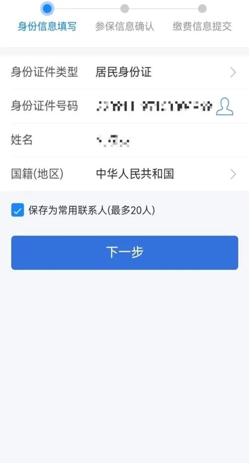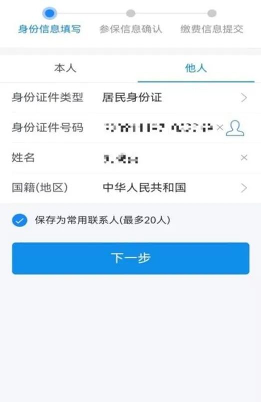进入缴费页面,输入姓名和身份证号即可为自己或他人缴费。