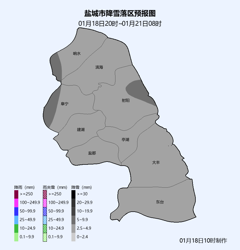 18日夜间到20日白天全市有一次雨雪天气过程,将出现积雪和道路结冰。18日夜间阴有小雨,19日凌晨自北向南逐渐转雪,雪量中等、局部大雪,最强降雪时段在19日夜间,20日白天降雪渐止。累计降雪量4~6毫米,最大积雪深度2~4厘米。