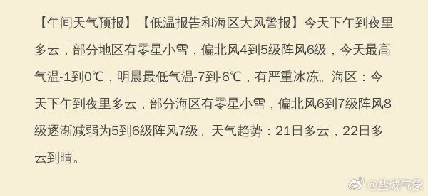 据盐城市气象台预测