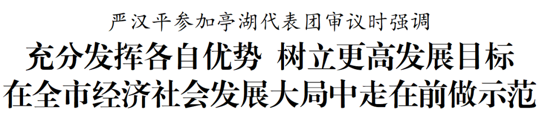 严汉平不时与代表互动,就有关问题进行交流探讨。他指出,刚刚过去的2025年,我们顺利完成各项目标任务,实现“十四五”圆满收官,亭湖、盐城经济技术开发区和盐南高新区在克难奋进中保持了良好发展态势。今年是“十五五”开局之年,做好今年工作意义重大、责任重大。希望亭湖、盐城经济技术开发区和盐南高新区继续发挥地处主城区的独特优势,奋发有为、进位争先,在全市大局中展现更大担当作为。