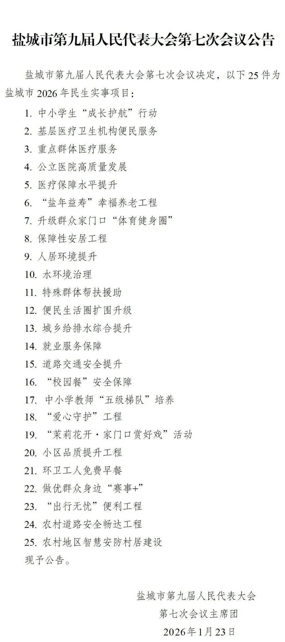 2026年民生实事项目