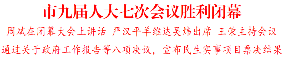 1月23日下午,市九届人大七次会议圆满完成各项议程后胜利闭幕。市委书记周斌在闭幕大会上讲话。