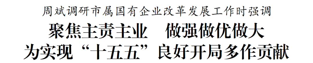 周斌强调,要扛好国企担当,紧扣全市发展大局,进一步明确方位、找准定位,科学制定总体目标和阶段性任务,在稳定经济增长、推动科技创新、引领产业升级、服务民生保障等方面发挥更大作用,在正确政绩观下紧张快干、真抓实干,确保“十五五”开好局、起好步。要全力提质增效,紧盯发展质量与效益,优化国有资本布局,把有限的资源集中在核心业务和专业领域上,大力发展新兴产业和未来产业,加快存量资产盘活利用,提升资源配置效率,提高项目市场化经营能力,不断增强发展后劲。要加大改革力度,用好国企改革深化提升行动成果,完善中国特色现代企业制度,健全市场化用工和薪酬激励机制,精准引进急需紧缺人才,着力解决制约发展的深层次问题,持续激发发展活力。要强化风险防控,坚持统筹发展和安全,聚焦重点领域健全风险内控、预警、处置等机制,严格规范投资行为和经营活动,提升国资监管效能,坚决守住不发生系统性风险的底线,保驾护航健康发展。