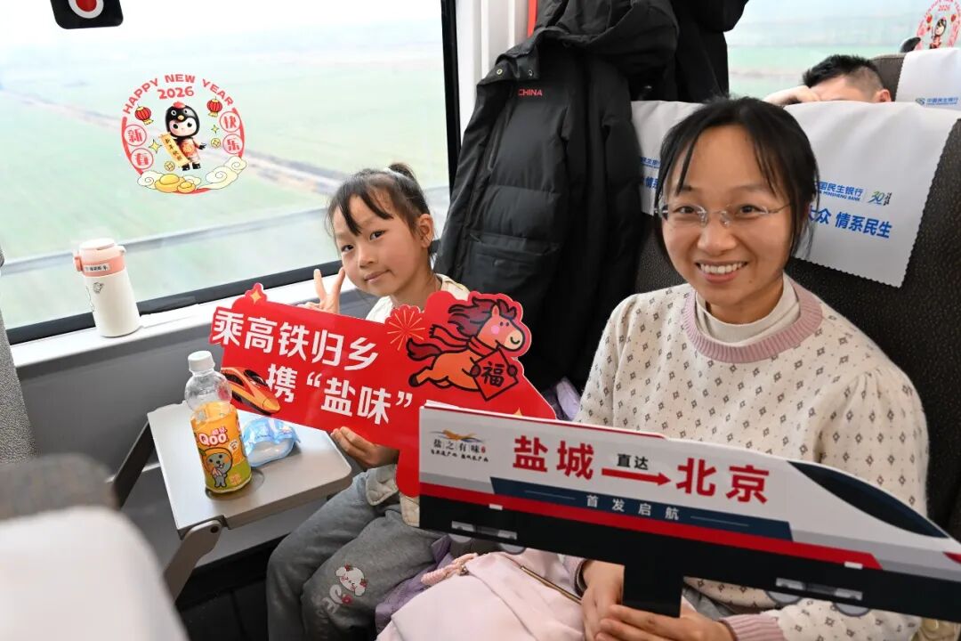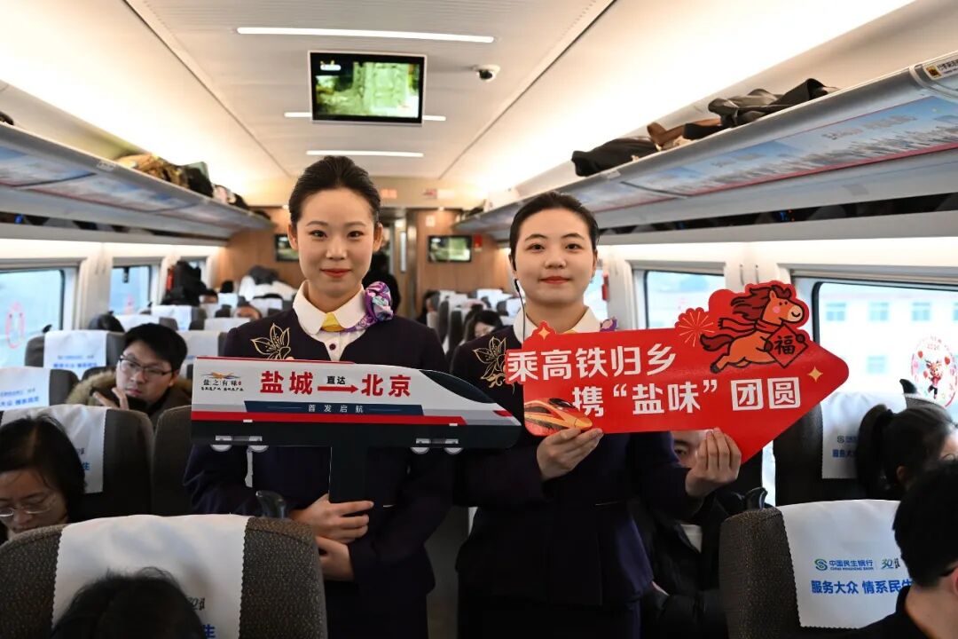 “这是我第一次坐盐城首发的进京高铁,太有意义了!”在G68次首发列车上,来自浙江财经大学市场营销专业的大学生杜宇峰正要赴京旅游,“以前去北京要好长时间,现在家门口出发4小时直达!”而在1月27日G797次列车上,就读于清华美院视觉传达专业的盐城籍博士生薛雨同样兴奋不已:“中午在清华食堂吃午饭,晚上就能到家吃晚饭,此前每逢假期回家,单程就要耗上大半天,现在周末想回家看爸妈都能说走就走,再也不用为路途遥远纠结了。”