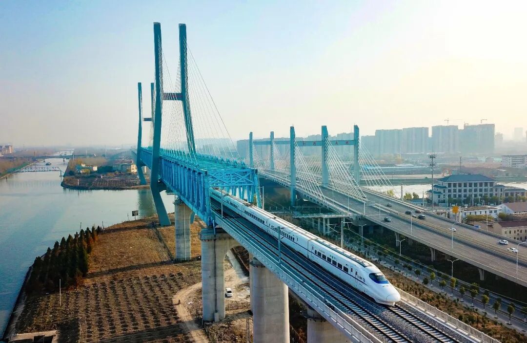 2019年12月16日,徐宿淮盐铁路通车,“和谐号”驶过新洋港斜拉桥。