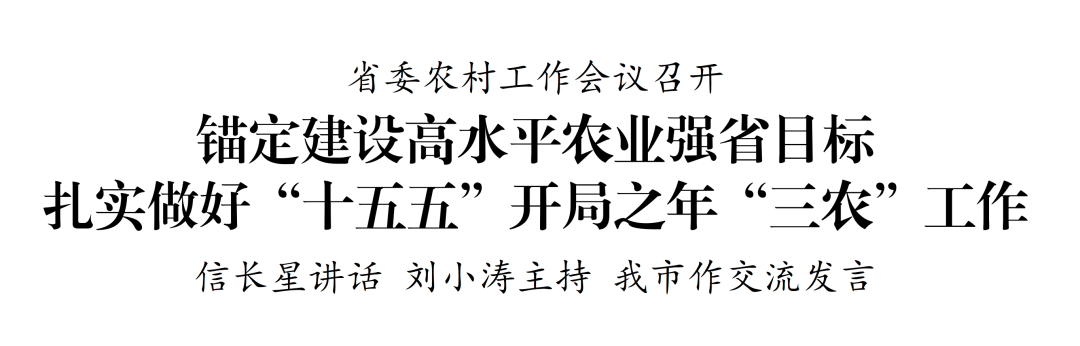 在充分肯定去年全省“三农”工作取得的成绩后,信长星指出,要深入学习贯彻习近平总书记关于“三农”工作的重要论述和对江苏工作重要讲话精神,认真落实中央农村工作会议部署,坚持把解决好“三农”问题作为重中之重,锚定建设高水平农业强省目标,扎实做好今年“三农”工作,为实现“十五五”良好开局提供坚实支撑。
