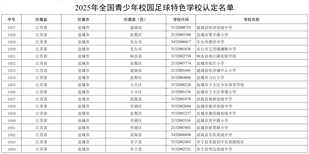 附件:2025年全国青少年校园足球特色学校认定名单