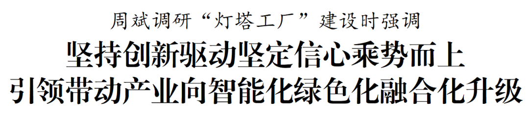 调研中,周斌与市相关部门和板块负责同志深入交流,探讨如何进一步放大“灯塔工厂”效应、赋能全市新型工业化发展。他强调,要坚持创新驱动,以“灯塔工厂”为标杆,充分激发企业内在能动性,鼓励支持更多企业融通创新,加强关键核心技术攻关,加快工业互联网规模化应用,打造更多智能车间和智能工厂。要优化产业生态,围绕主导产业和战略性新兴产业,在政策支持、要素保障、场景开放、人才引育等方面提供更优服务,全力支持各类企业在盐发展壮大,凝聚起推进中国式现代化盐城新实践的强大合力。