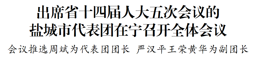 市委书记周斌主持召开全体会议。代表们一致推选周斌为盐城市代表团团长,市委副书记、市长严汉平,市人大常委会主任王荣,市委常委、市委组织部部长黄华为代表团副团长。