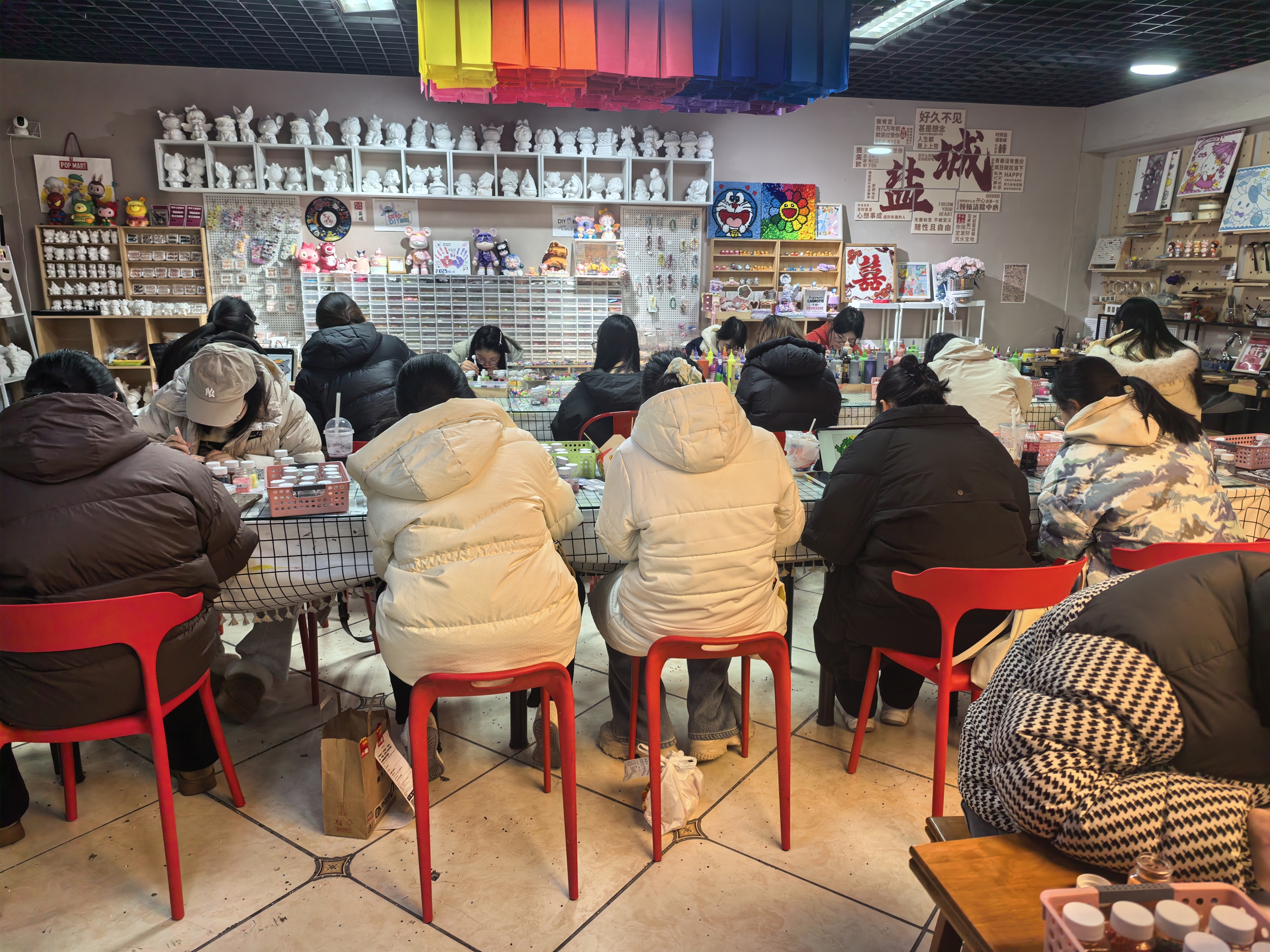 “每周四到周日,13张桌子基本全满。有时候还要排队。”城南一家手作店店长刘佳说。店长表示,超过60%的顾客是大学生,其余为年轻上班族和少量高中生。