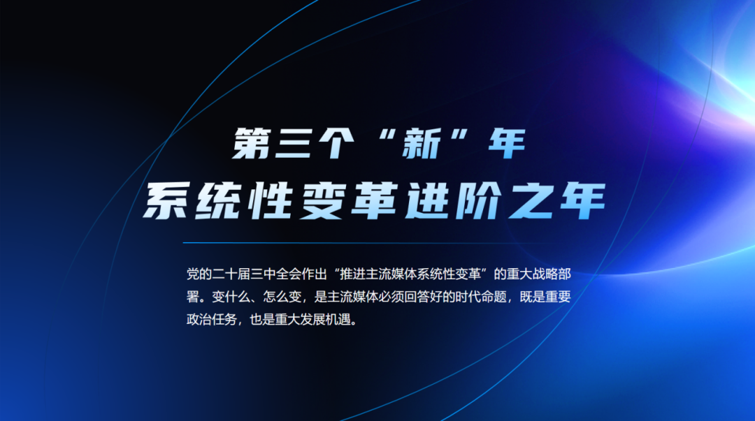 第三个“新”年,是系统性变革进阶之年。党的二十届三中全会作出“推进主流媒体系统性变革”的重大战略部署。变什么、怎么变,是主流媒体必须回答好的时代命题,既是重要政治任务,也是重大发展机遇。