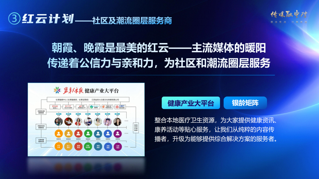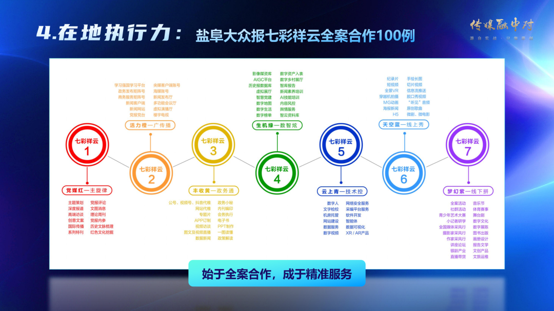 在地执行力,聚焦本地刚需,以“新闻+数据+智库+智能+活动→交易”的全链路模式,打造“七彩祥云”全案合作100例,聚线上声量、汇线下流量、拓服务增量、提价值含量、强传播能量;