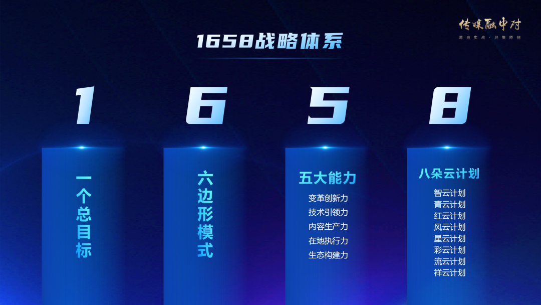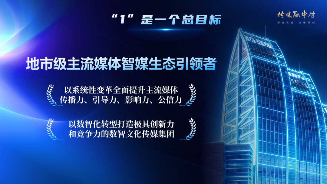 “1”,是一个总目标,即打造地市级主流媒体智媒生态引领者。通过系统性变革,全面提升主流媒体的传播力、引导力、影响力、公信力,以数智化转型打造极具创新力和竞争力的数智文化传媒集团。