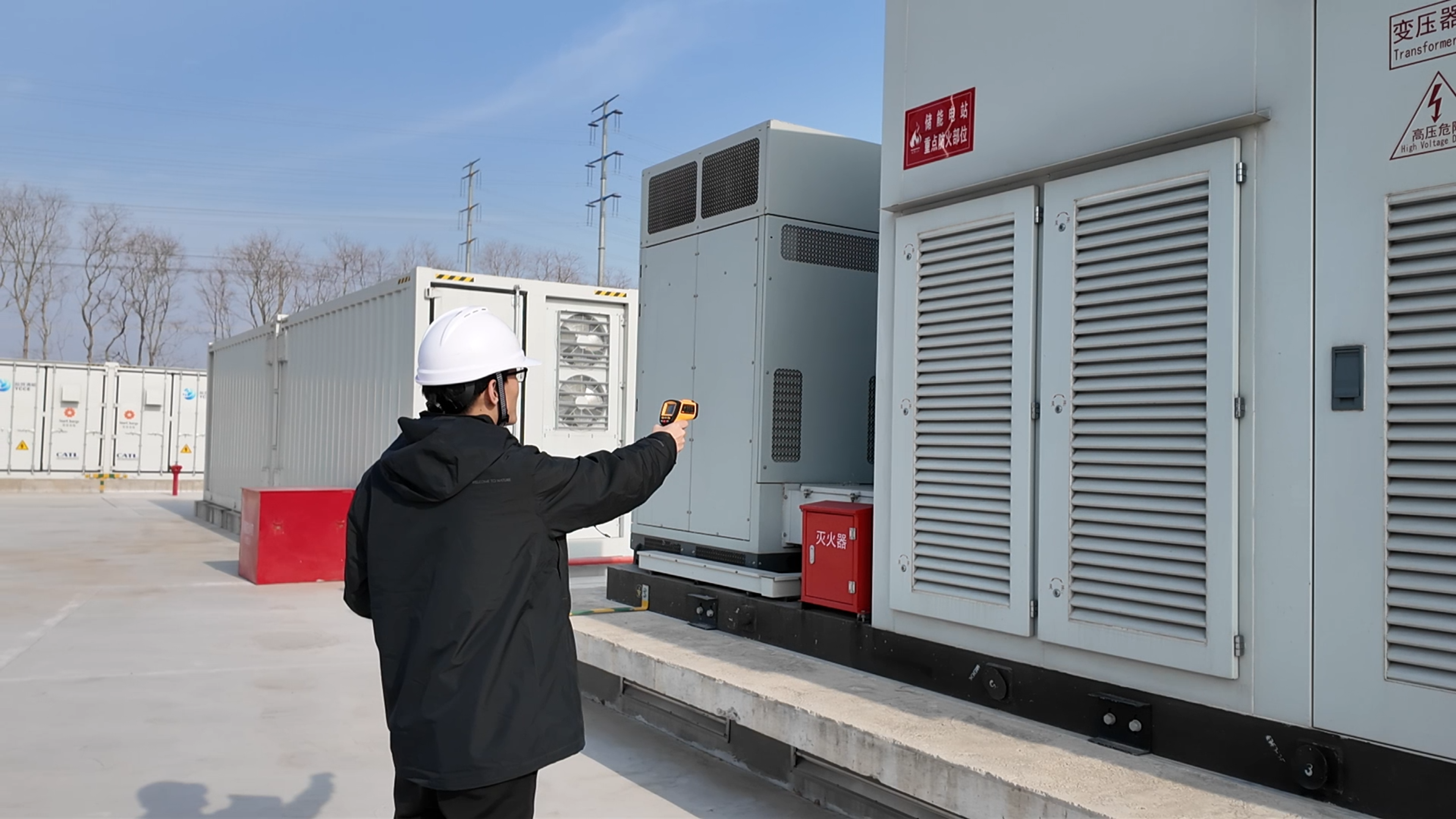 “别看这些电池舱安安静静的,里面藏着大能量,舱内电压高达三万五千伏,一丝一毫都不能马虎。”巡检技术员阚明一边说着,一边戴上安全帽,拿起检测仪器,准备去巡检电池舱。