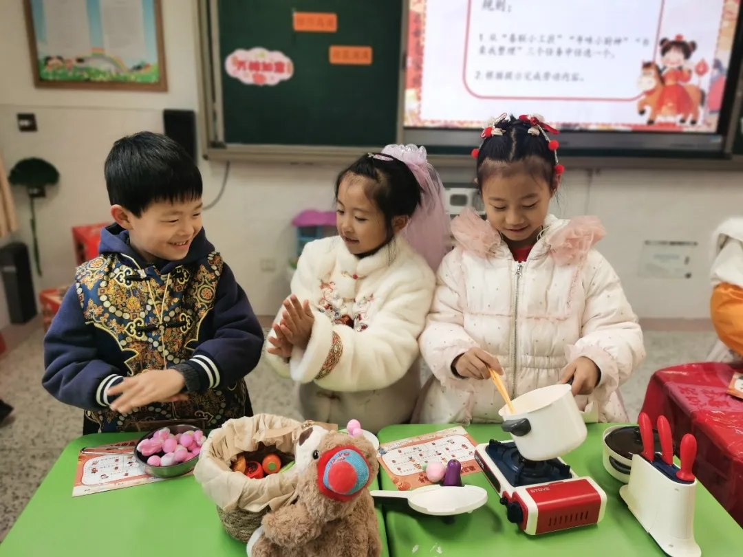 作为植根盐阜大地的学校,串场河小学将本土文化元素巧妙融入测评全过程,让孩子们在闯关途中感受家乡魅力。一年级的学生们用数学知识计算如何购买阜宁大糕、藕粉圆子等盐城特色年货。搓汤圆、贴春联、整理书桌等“年味农事忙”任务,让孩子们在实践中感受年俗、发挥劳动技能制作美食。二年级的孩子们在“世遗探秘游”关卡,化身“小小讲解员”,自信满满地介绍丹顶鹤保护区、海盐博物馆等家乡名胜,口语交际表达流畅、逻辑清晰;“家乡滋味长”环节,面对盐城八大碗的美食图片,孩子们用稚嫩的童声推荐“心头好”,在舌尖记忆中厚植家国情怀。