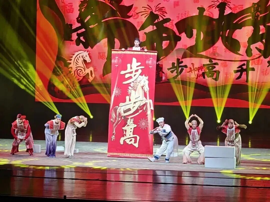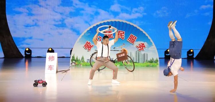 他们身后,7名杂技演员正在排练今年新编排的节目《步步糕》。这个小型杂技剧融合了阜宁大糕这一地方文化元素,致力于打造具有阜宁辨识度的艺术作品。