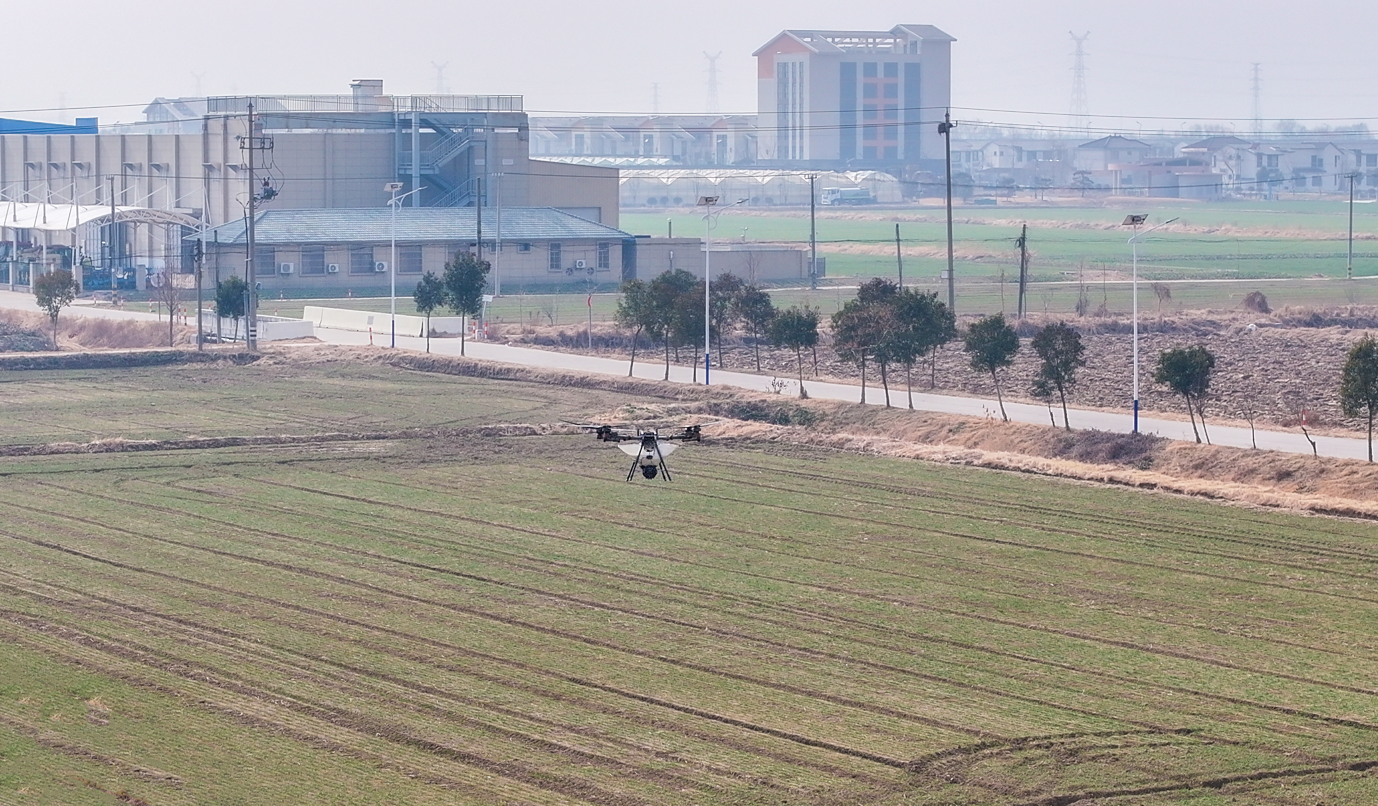 2月4日一大早,晨光未暖,记者来到五星村田园综合体,刚进米仓,浓烈的米香扑面而来。走进田间,禾苗正露尖尖角,大型植保无人机在低空穿梭作业,争分夺秒施“春肥”。江苏盐阜米仓生态公司负责人严超介绍,针对当地土壤特点,五星村联合湖南袁隆平国际稻都农业技术研究院,研发专属富硒水稻品种并获得专利。严超说:“我们的富硒米要求很高,就以含硒量来说,低了就不是富硒米了,高了超出标准也不行。这一优质稻米仅限本地种植,别处无法复制。若其他地区想要引种,必须正式申请并获得许可。”