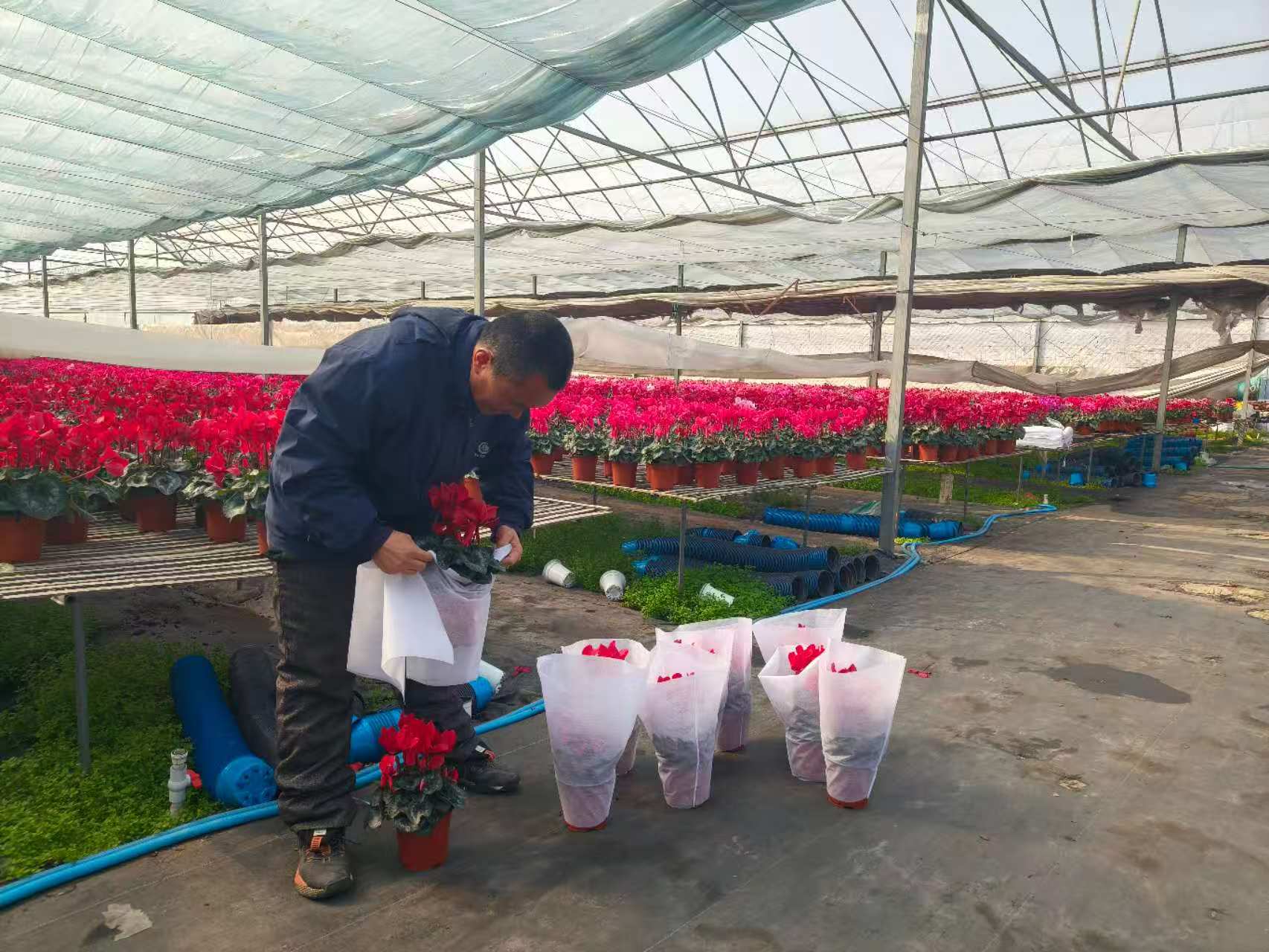 “鲜花传吉利,买几盆鲜花带回家过年,讨个新春好彩头。”2月13日上午,东台市梁垛镇红芳花卉种植家庭农场里,8个大棚连成一片,掀开厚实的门帘,暖湿的空气裹挟着花香扑面而来,眼前是一片烂漫花海。