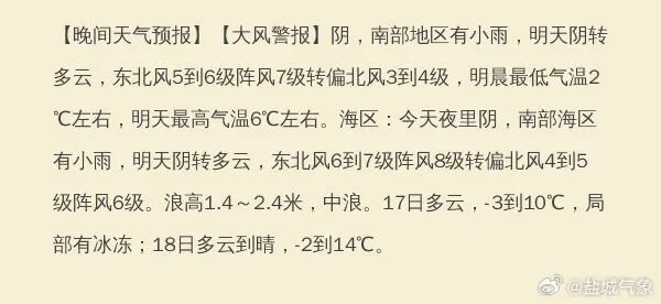 据盐城市气象台最新预测