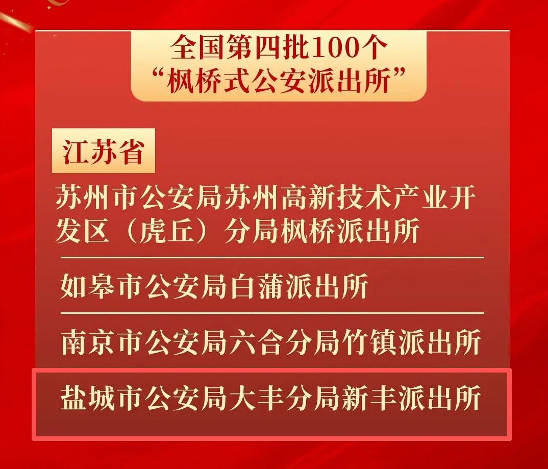 第四批“枫桥式公安派出所”,盐城+1