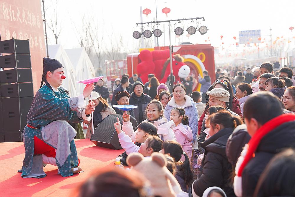 传统年俗与新潮消费在大集里碰撞出奇妙的火花,非遗摊位旁的潮玩手办吸引着年轻群体的目光,盒马鲜生新春快闪店里的网红零食、新春礼盒成为市民的新选择,有人捧着刚做好的糖画扫码支付,有人逛完非遗工坊又去体验手工DIY,古老与现代、传统与新潮就这样在浓浓的年味儿里和谐共生。大集的草坪区里,亲子运动会的欢声笑语依旧不断,新年窗花裁剪、传统糖画绘制等互动活动轮番开展,“在大集上和爸爸妈妈一起做手工、玩游戏,还买了好多年货,等着过年啦!”小朋友刘羽萱的脸上满是笑容。