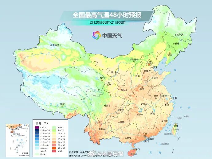明后两天(正月初四、初五),我国大部地区气温将会陆续达到近期高点,并会大规模创出今年以来新高,多地将体验到常年4月的暖意。