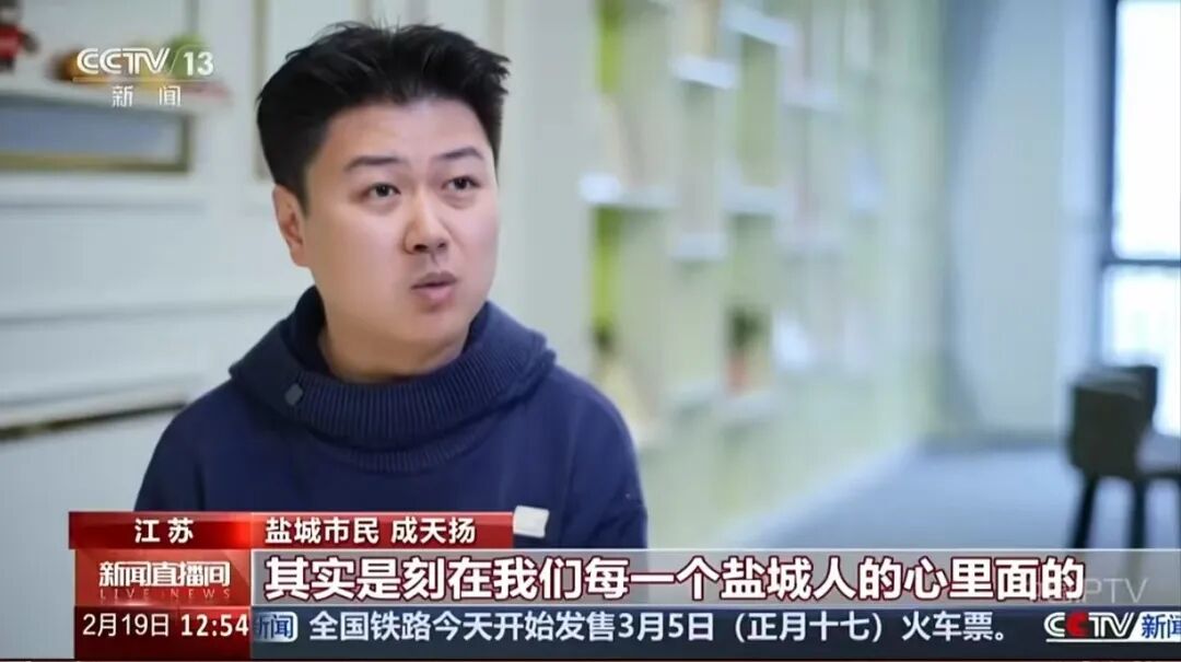 盐城市民 成天扬:我们会发现其实这座城市永远都是焕发生机的,尤其是像我们“大铜马”的精神,其实是刻在我们每一个盐城人的这个心里面的,永远的不服输,永远的向东前进。