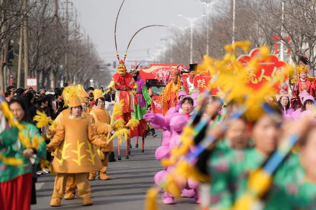 2月19日(正月初三)上午,盐都区大冈镇街头锣鼓喧天、人潮涌动,“鞋机之乡古韵大冈”2026“闹新春”春节踩街活动火热上演,当地群众与游客齐聚街头,在浓浓民俗味中欢度新春佳节。