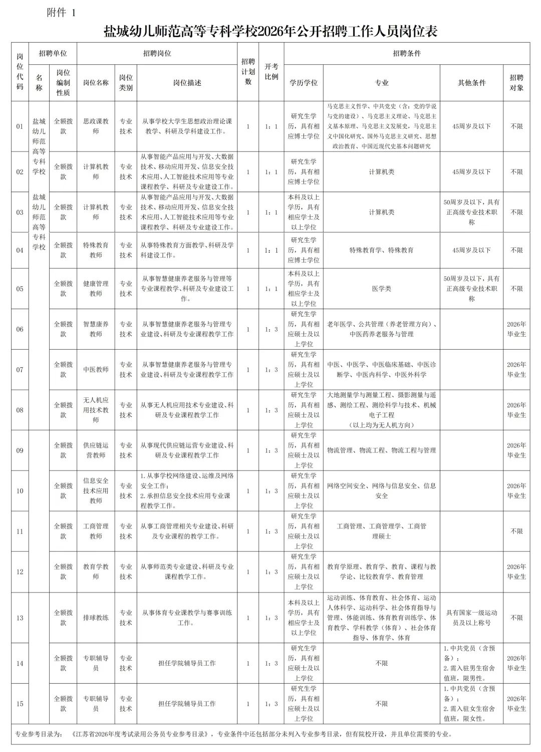 为进一步优化师资队伍结构,为学校发展提供良好的人才支撑,盐城幼儿师范高等专科学校现面向社会公开招聘工作人员15名。