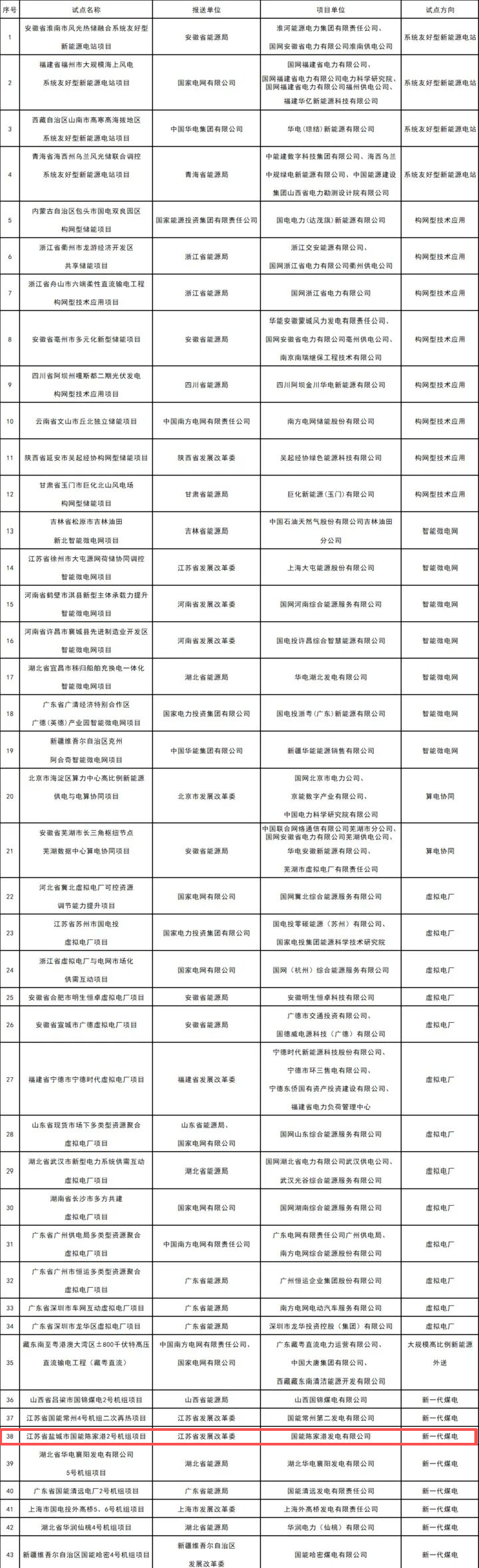 1、新型电力系统建设能力提升试点项目名单(第一批)
