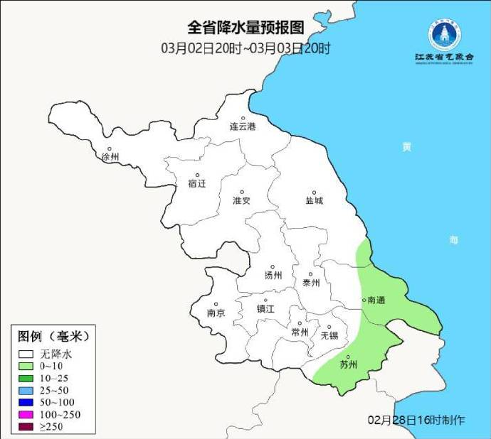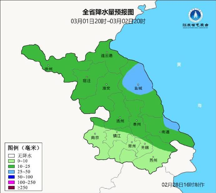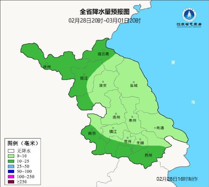 2月28日20时至3月1日20时,全省阴有小到中雨。