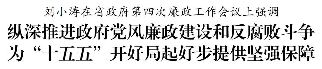 刘小涛指出,近年来全省政府系统认真贯彻党中央、国务院决策部署,在省委领导下着力转政风、提效能、严纪律、肃贪腐,党风廉政建设和反腐败斗争取得新成效。我们要深刻领悟“两个确立”的决定性意义,坚决做到“两个维护”,切实把思想和行动统一到习近平总书记重要讲话和党中央决策部署上来,深刻领会“两个仍然”的重大判断和管党治党越往后越严、一严到底的鲜明立场,以一步不停歇、半步不退让的战略定力,把党风廉政建设和反腐败斗争不断引向深入。