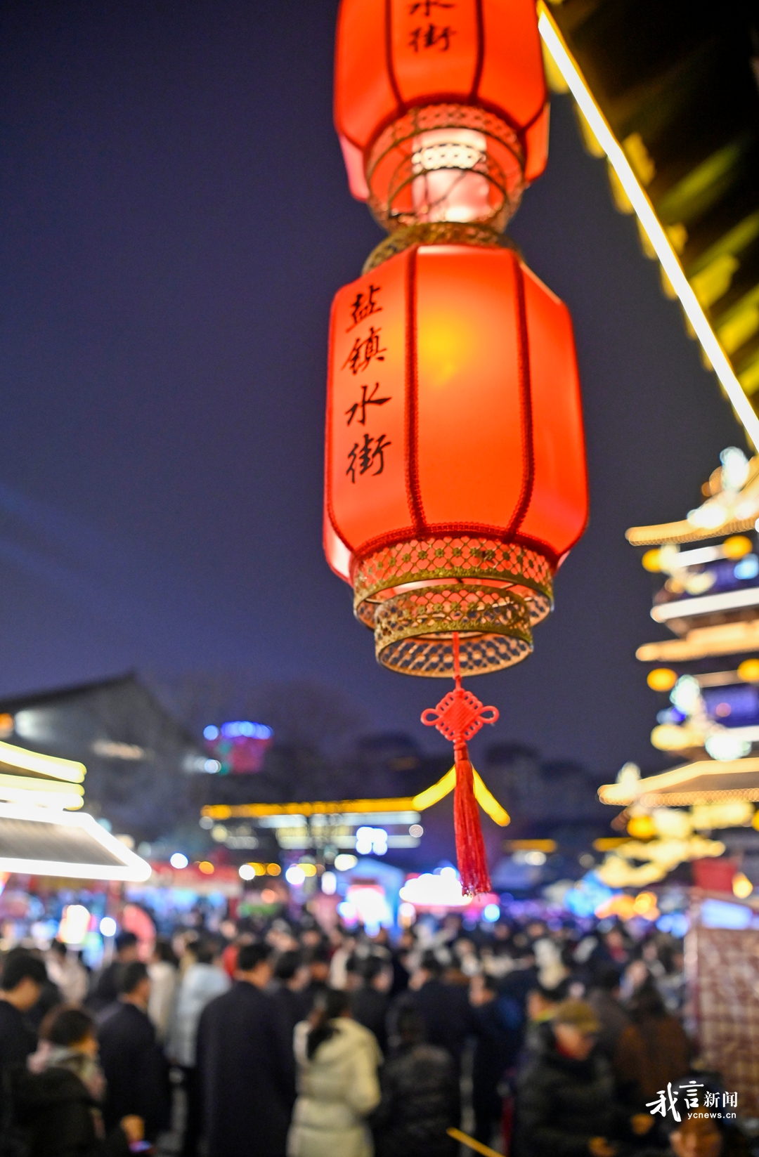 顺着人流往盐镇水街深处走去,记者恍若跌入一个流光溢彩的梦境。身旁,各色主题灯组次第呈现;脚下,石板路被光影温柔浸润。