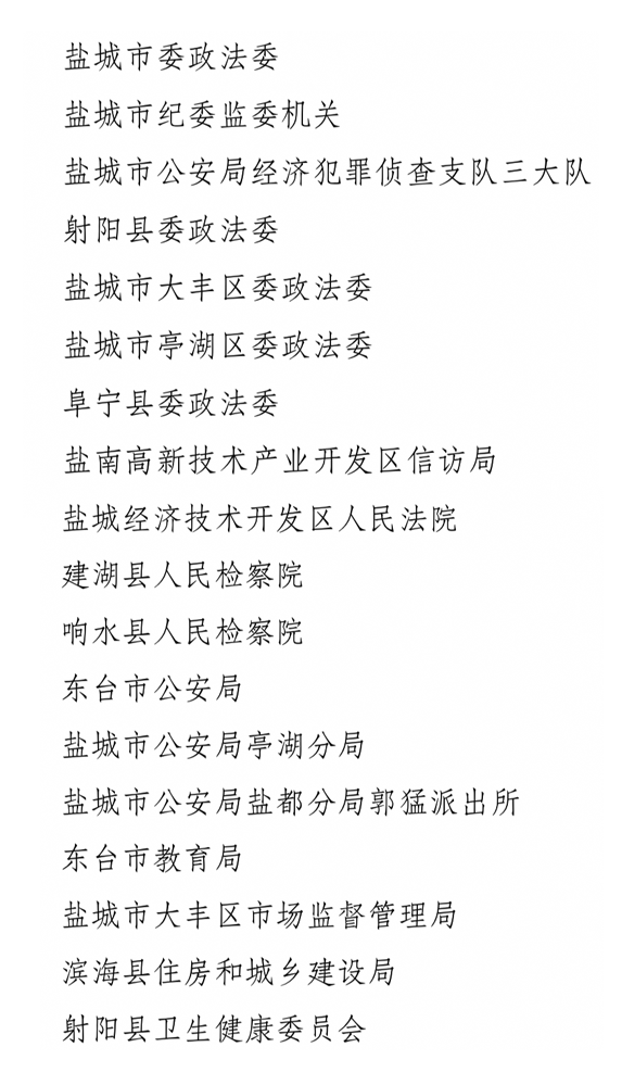 盐城入选名单如下
